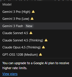 You have reached the quota limit for Gemini 3 Pro (High). You can resume using this model at 1/23/2026, 10:21:50 PM. You can upgrade to a Google AI plan to receive higher rate limits. See plans.